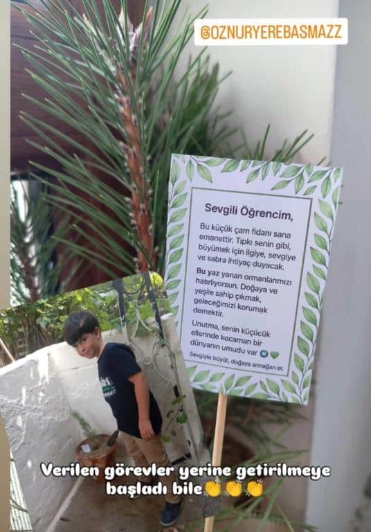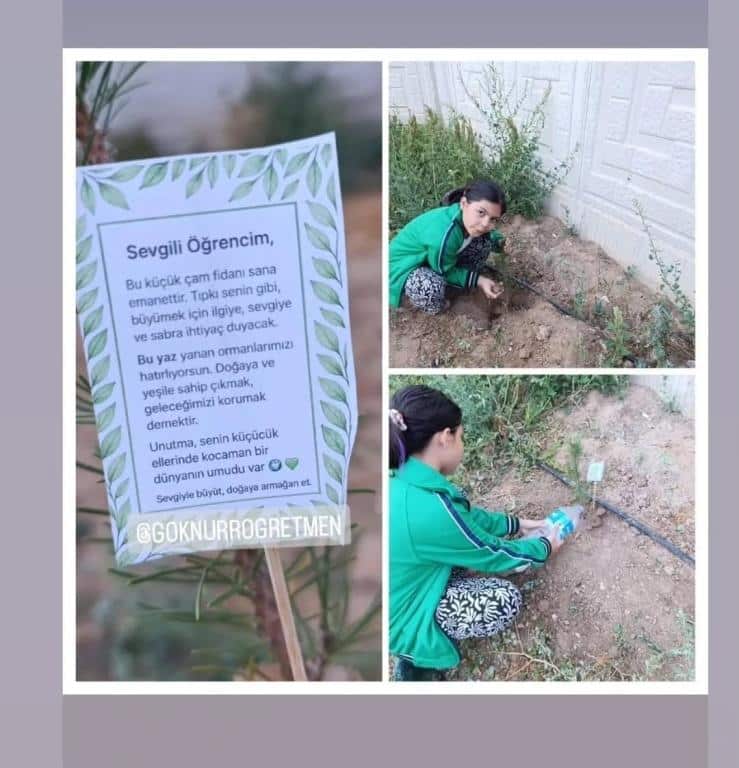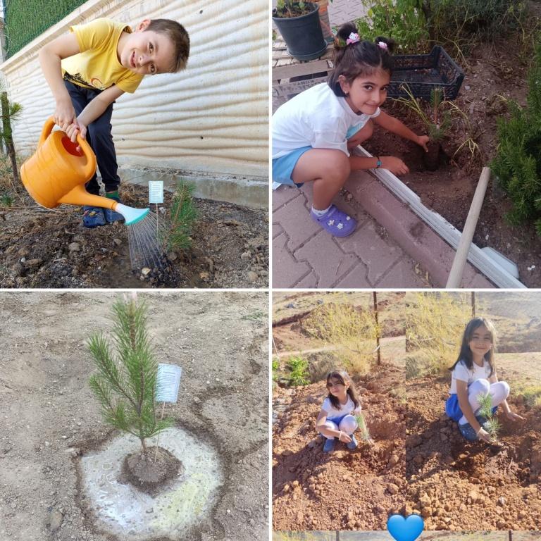 Minik ellerin toprakla buluştuğu bu anlamlı etkinlikte her öğrenci, diktiği fidanla geleceğe nefes oldu.